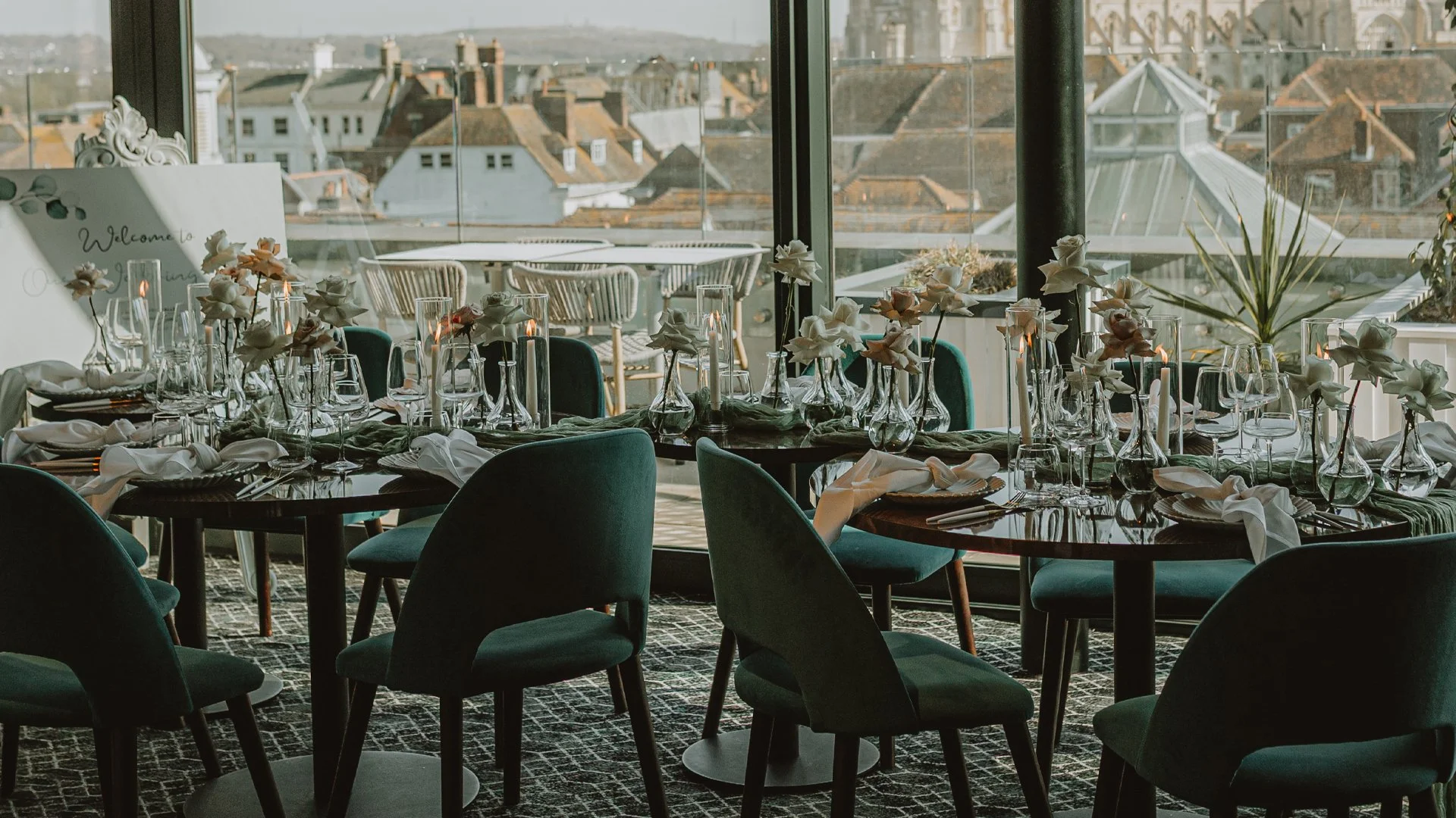 Begin your evening with a glass of fizz on arrival before exploring our beautiful venue with cathedral views, styled to inspire.